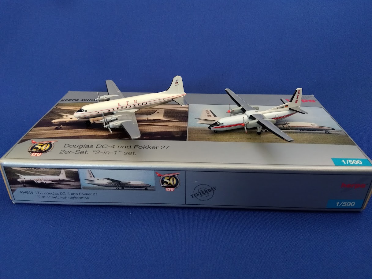 514644 Herpa LTU International / LTUインターナショナル DC-4 & F-27 2機セット D-AMIR & D-BAKE 2機セット 1:500